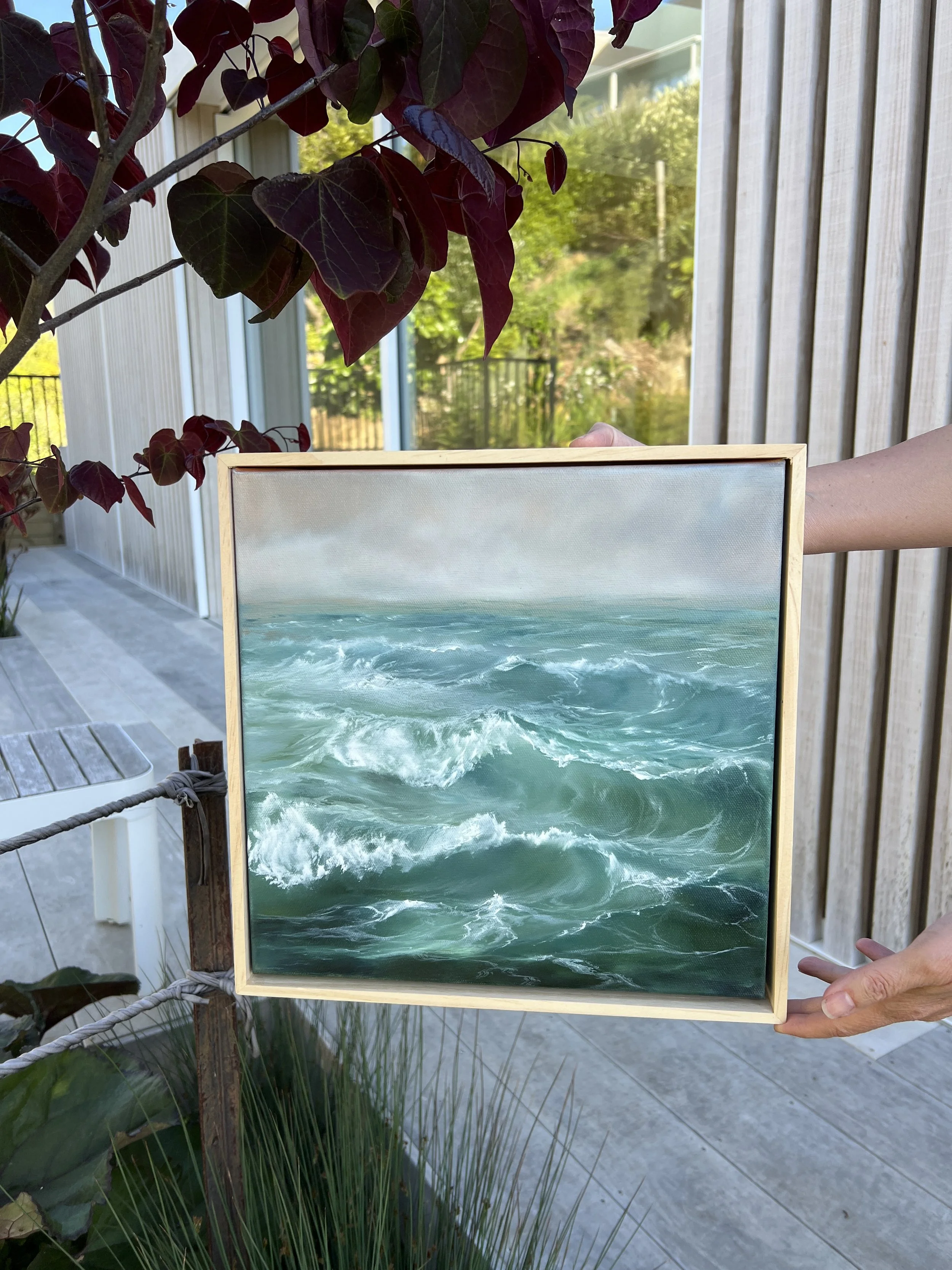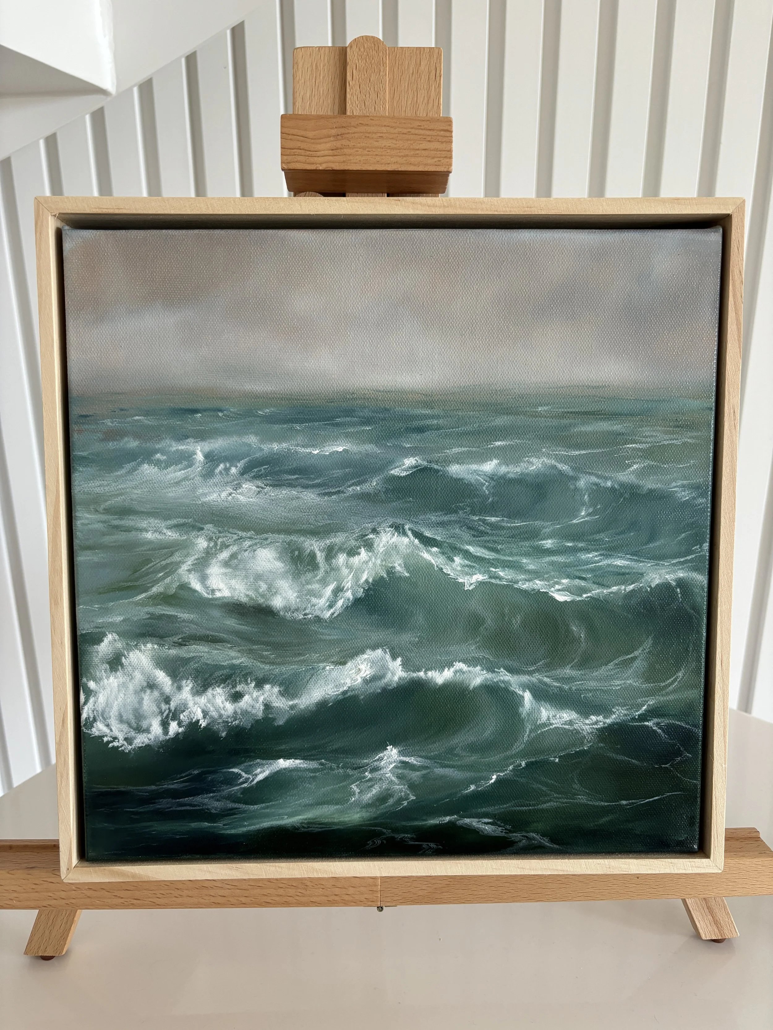 Original oil on canvas set in boxed wooden frame